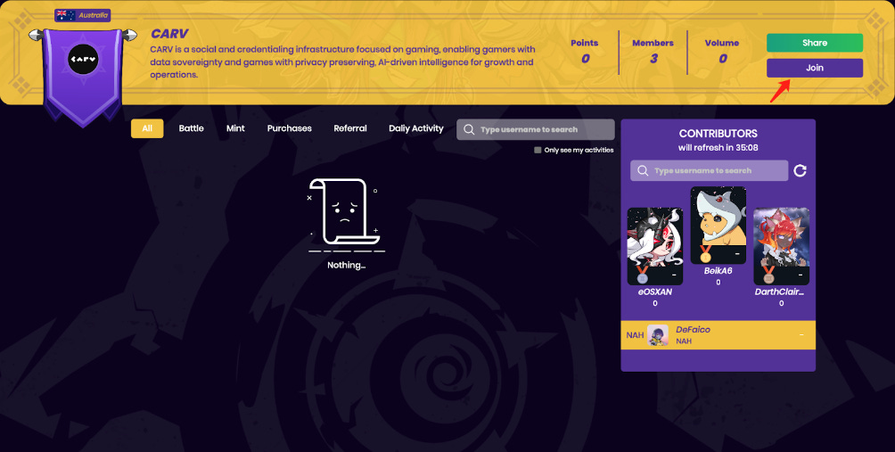 After account creation, players can head to the guild page and click “Join”.