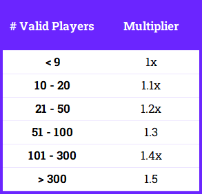 Guilds will be ranked according to the total accumulated points earned by its guild members. Points are awarded according to the following formula: