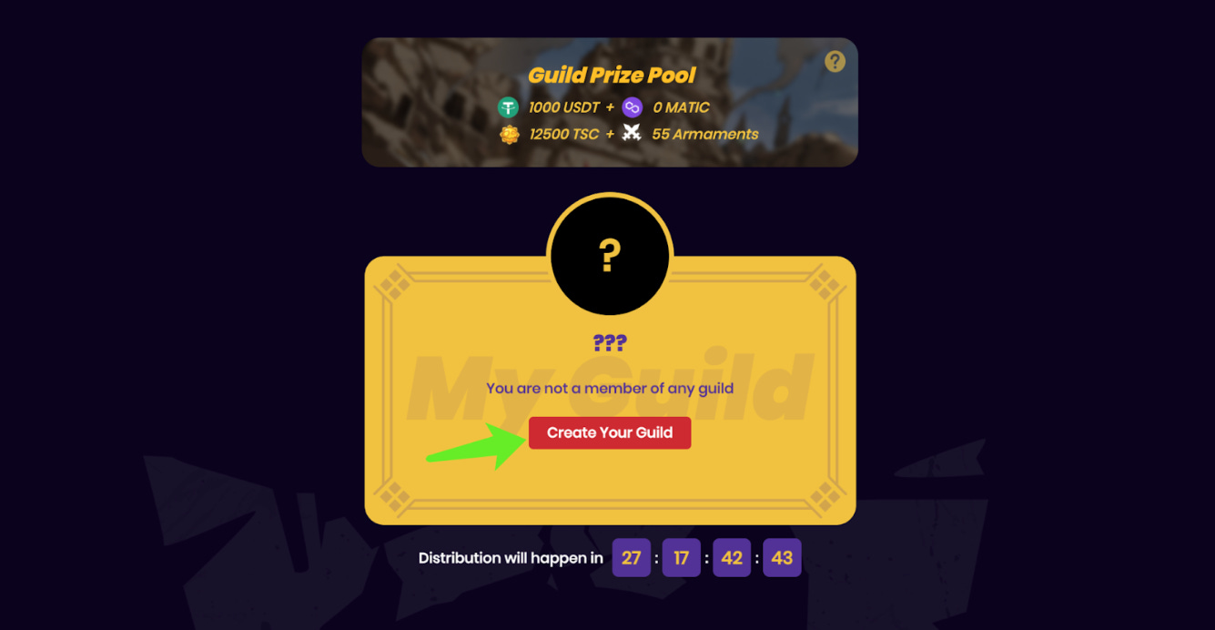 Guild rewards will be airdropped to the team account. Each guild should be responsible for allocating the rewards within their team. $TSC has not launched on-chain yet, so it won’t be able to be transferred to other wallets at the moment. The rarity and type of the weapon NFT will be randomly selected.