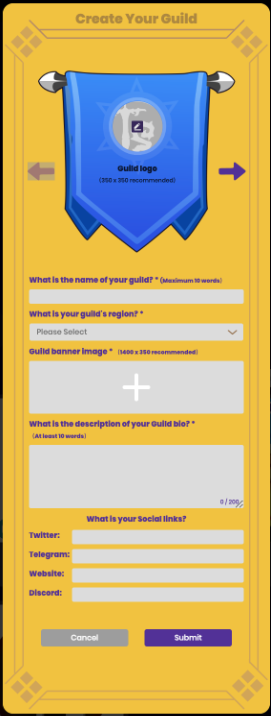 Fill in the required information and click “Submit”. Upon review and approval, your guild will be created and shown on the same page - so keep an eye out for updates.
