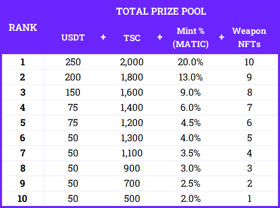500 points for every paid mint of a weapon NFT.